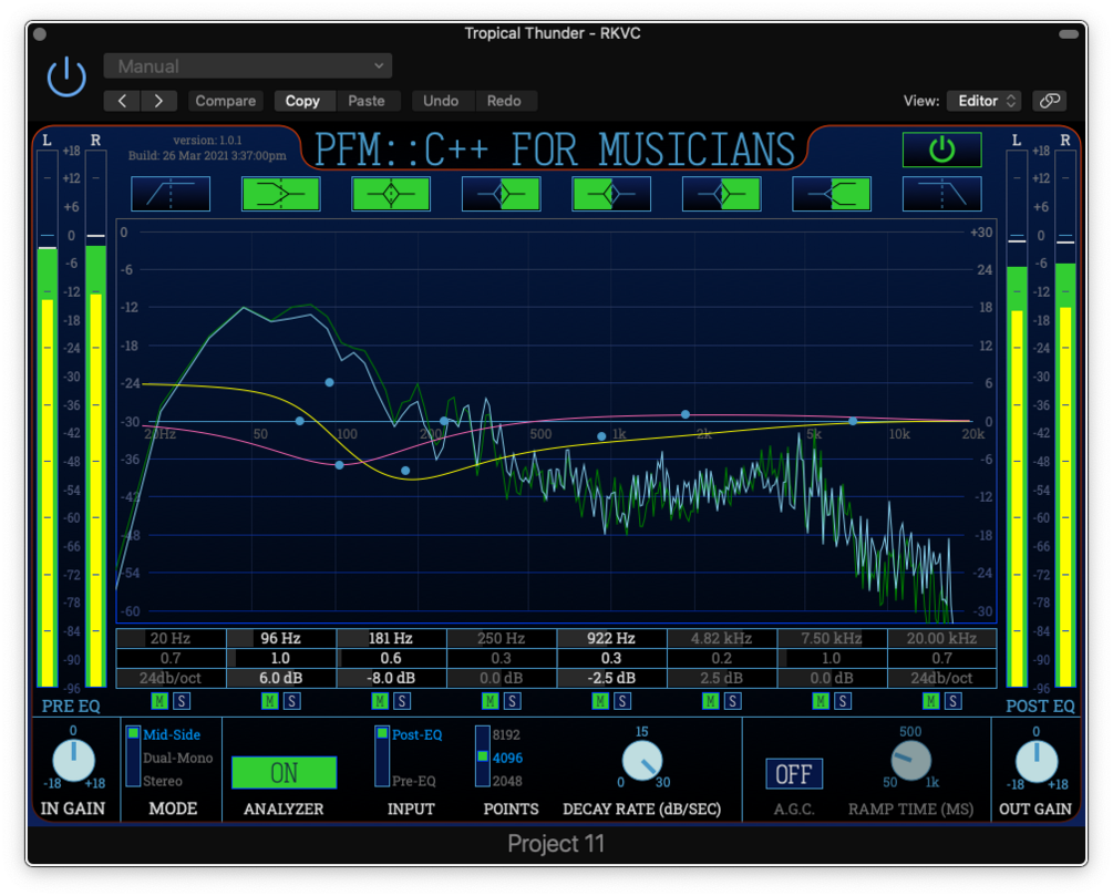 PFM::Project11 teaches you how to build a plugin similar to Logic Pro X's ChannelEQ, but with some extra bells and whistles!
